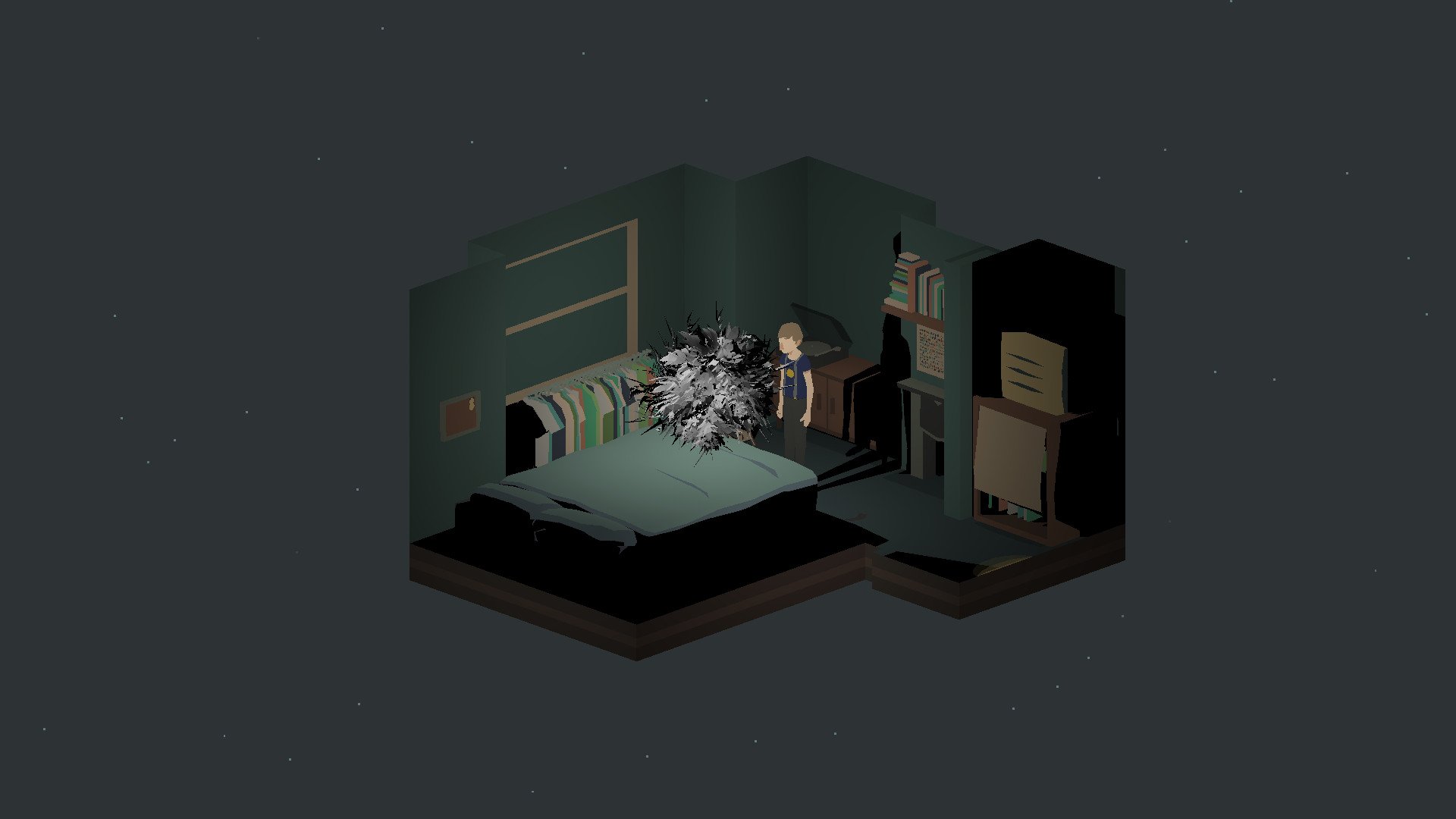 Bo and Ao are graduating university and preparing to leave the flat they’ve lived in together for a year. Thanks to visa limitations, Ao is forced to return to Japan, leaving Bo in England. Disillusioned by post-educational life and shoved aside by a government who doesn’t want them there, both are trying to come to terms with their uncertain futures. And deep under their South London flat, something grows...Wander through an intimate flat and examine the everyday belongings of Bo and Ao. Have BBQs, play video games, and stay up late just talking in bed. Follow the day to day activities and conversations of two queer, non-binary students and their friends. Get to know Lu, the multi-eyed, animal-like new flatmate.No Longer Home was born when the developers were similarly forced apart after university, and decided to stay in touch by working on a game together. Development duo Hana and Cel chose this project as a way to explore and express the emotions that came with saying...